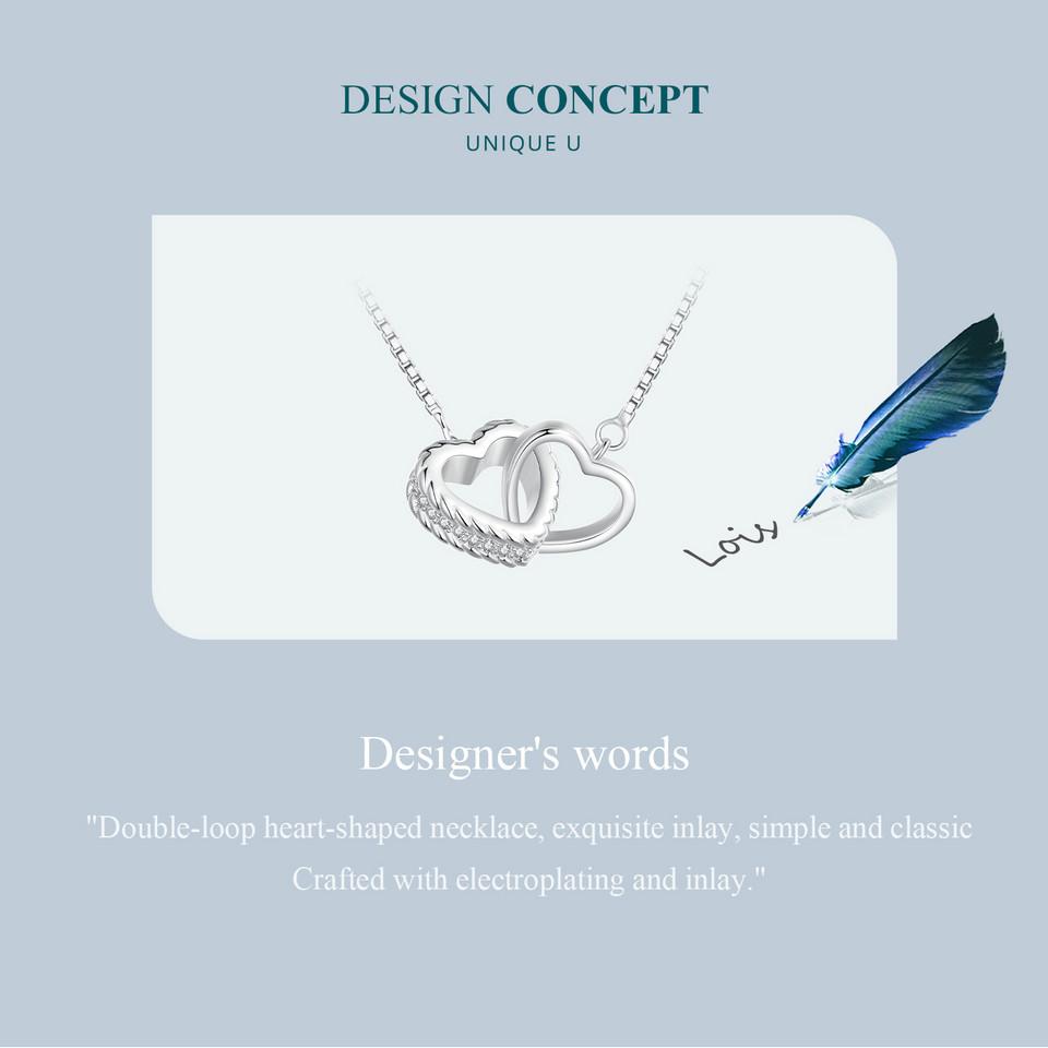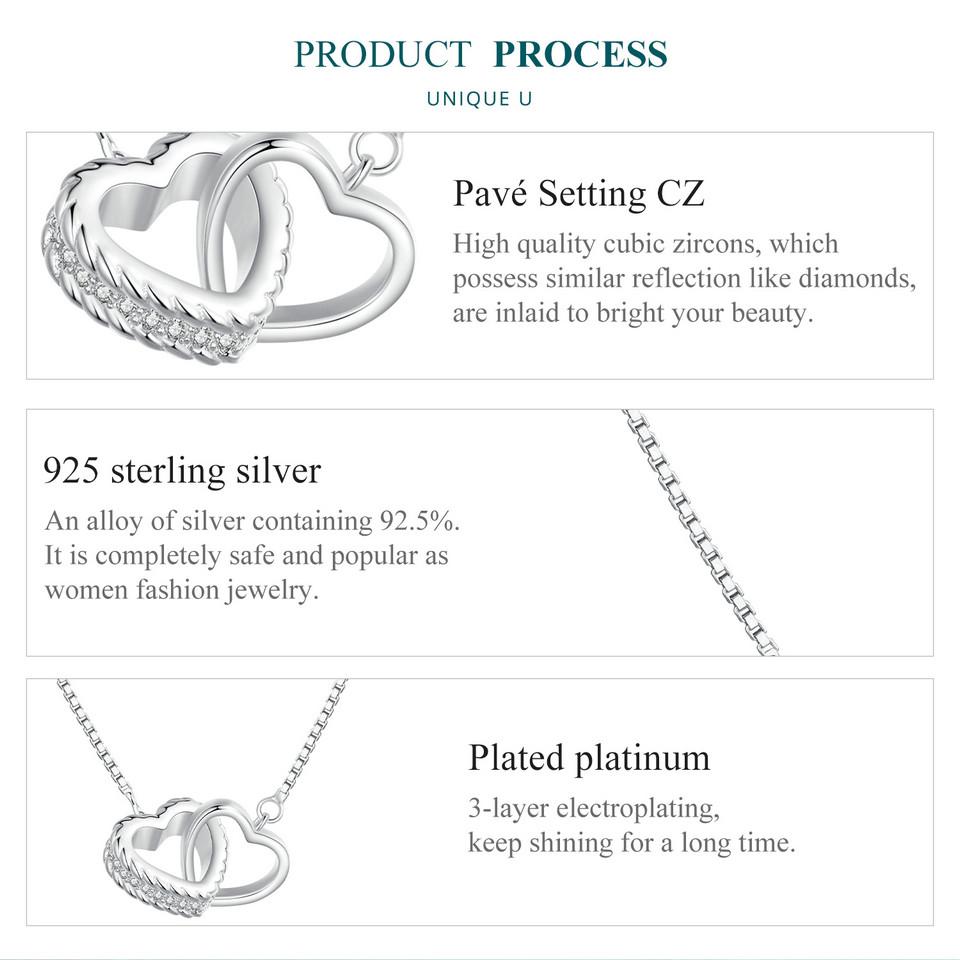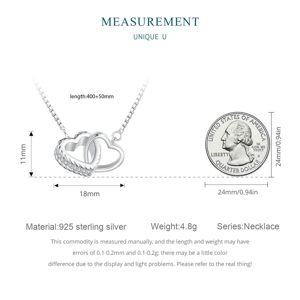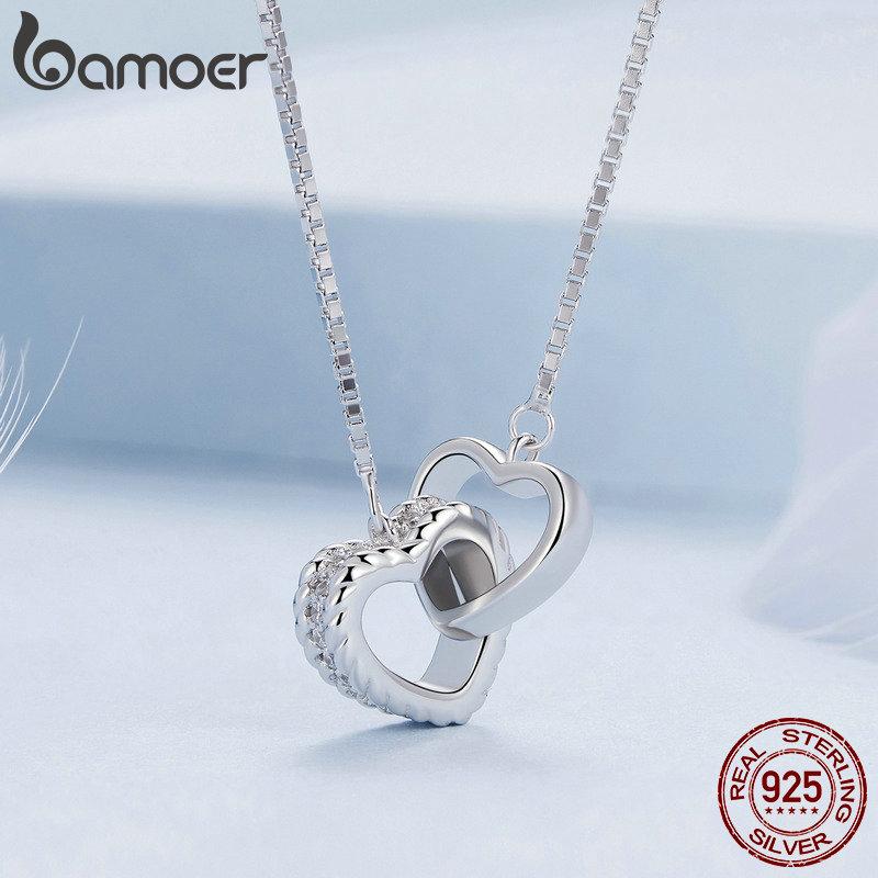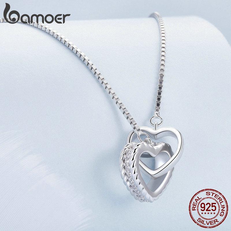 BAMOER стерлингового серебра 925 пробы двойное сердце кулон ожерелье ключицы звено цепи для женщин вечерние украшения подарок на день Святого Валентина