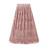 Qooth Женская плиссированная юбка с кисточками, элегантная эластичная талия, универсальная длинная юбка трапециевидной формы на весну и лето QT2140