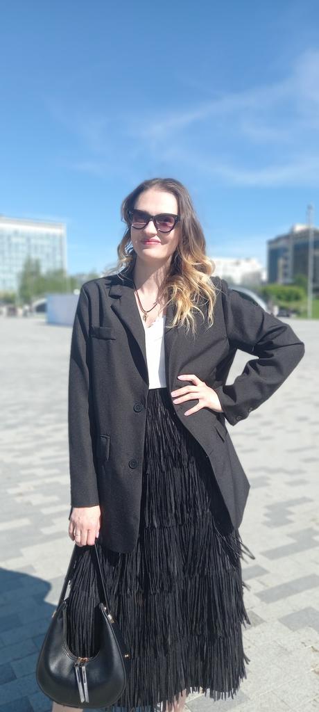 Юбка очень интересная, на лето будет отлично, как на карнавале с этой бахрамой. Она без подклада, на ткань нашита бахрама из ткани, прикольная