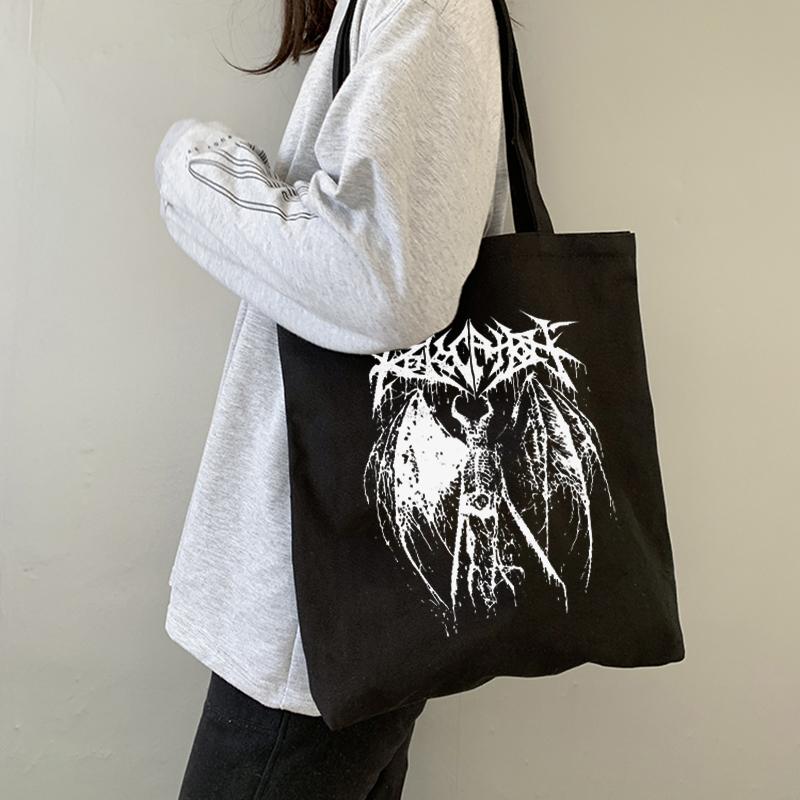 Холщовые сумки в стиле готического дьявола Ulzzang, повседневные сумки в стиле панк, большая вместительность, новая сумка-шоппер в стиле Харадзюку, женская сумка в стиле хип-хоп, темные женские сумки на плечо