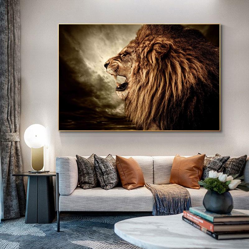 Современные черно-белые рычащие львы, животные, пейзажные постеры и принты, холст, картина, настенная картина для гостиной, домашний декор, без рамки