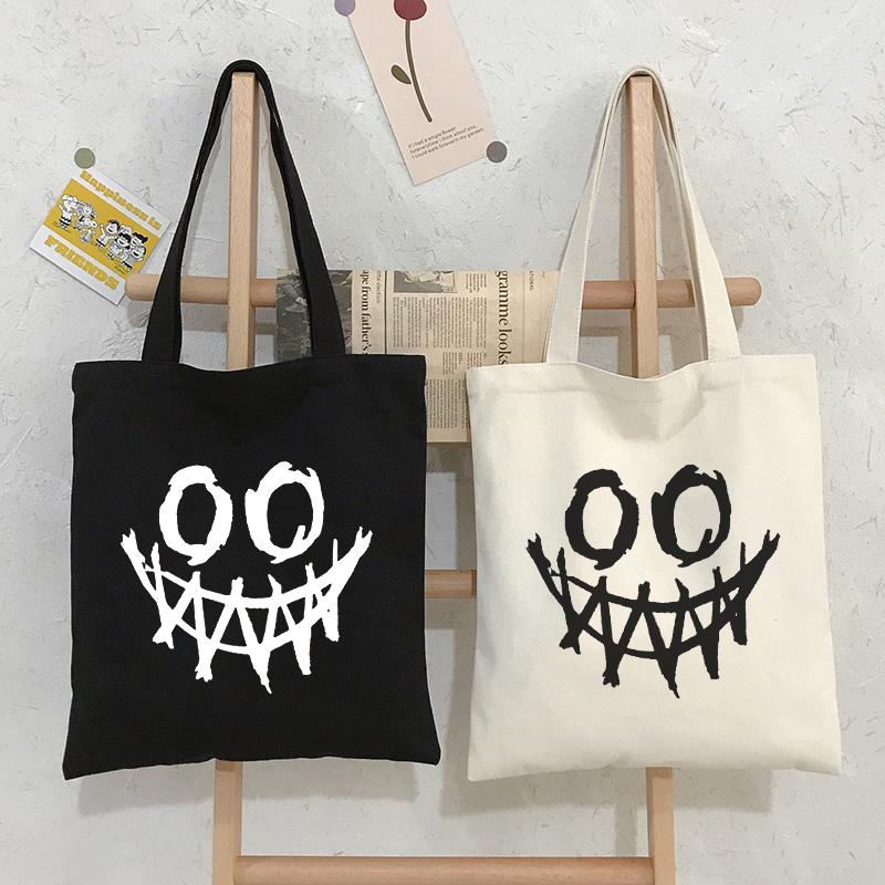 Японская темная сумка-шоппер, готическая холщовая сумка Waves y2k, забавная мультяшная большая вместительная женская сумка Ulzzang, женские сумки на плечо в стиле Харадзюку