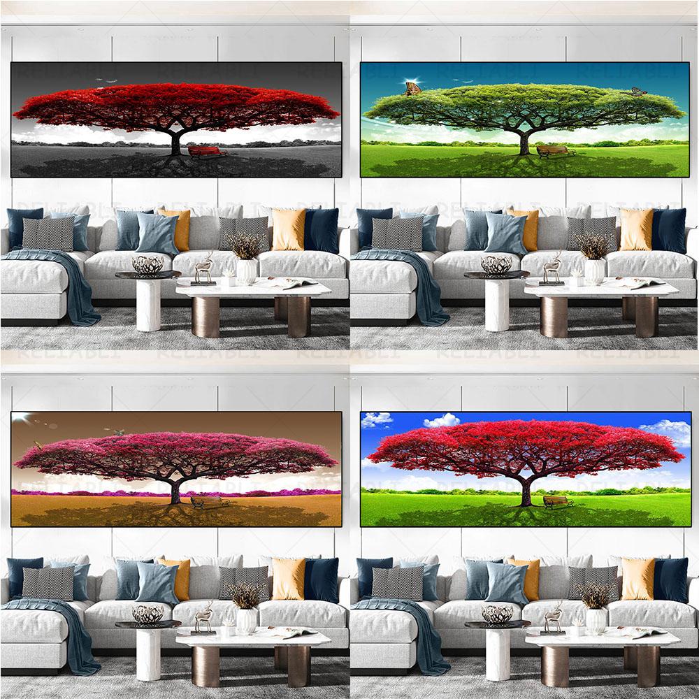 Абстрактное красное, зеленое большое дерево, деревянный стул, пейзаж, холст, живопись, постеры и принты, настенные художественные фотографии, домашний декор, без рамки — купить товар онлайн с бесплатной доставкой по всему миру!