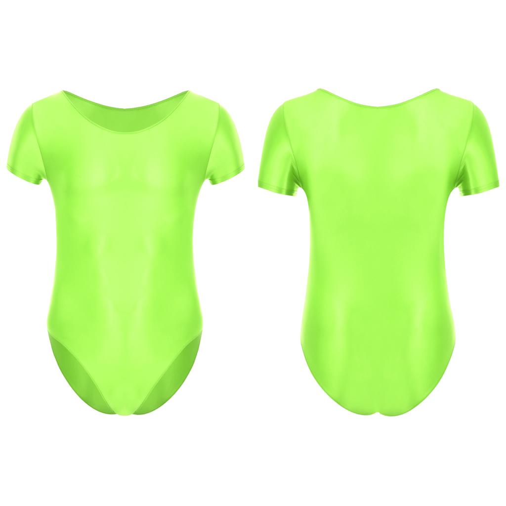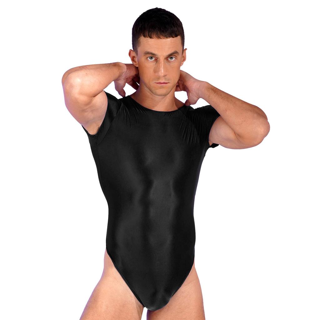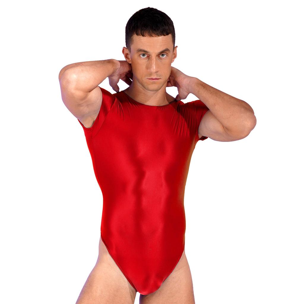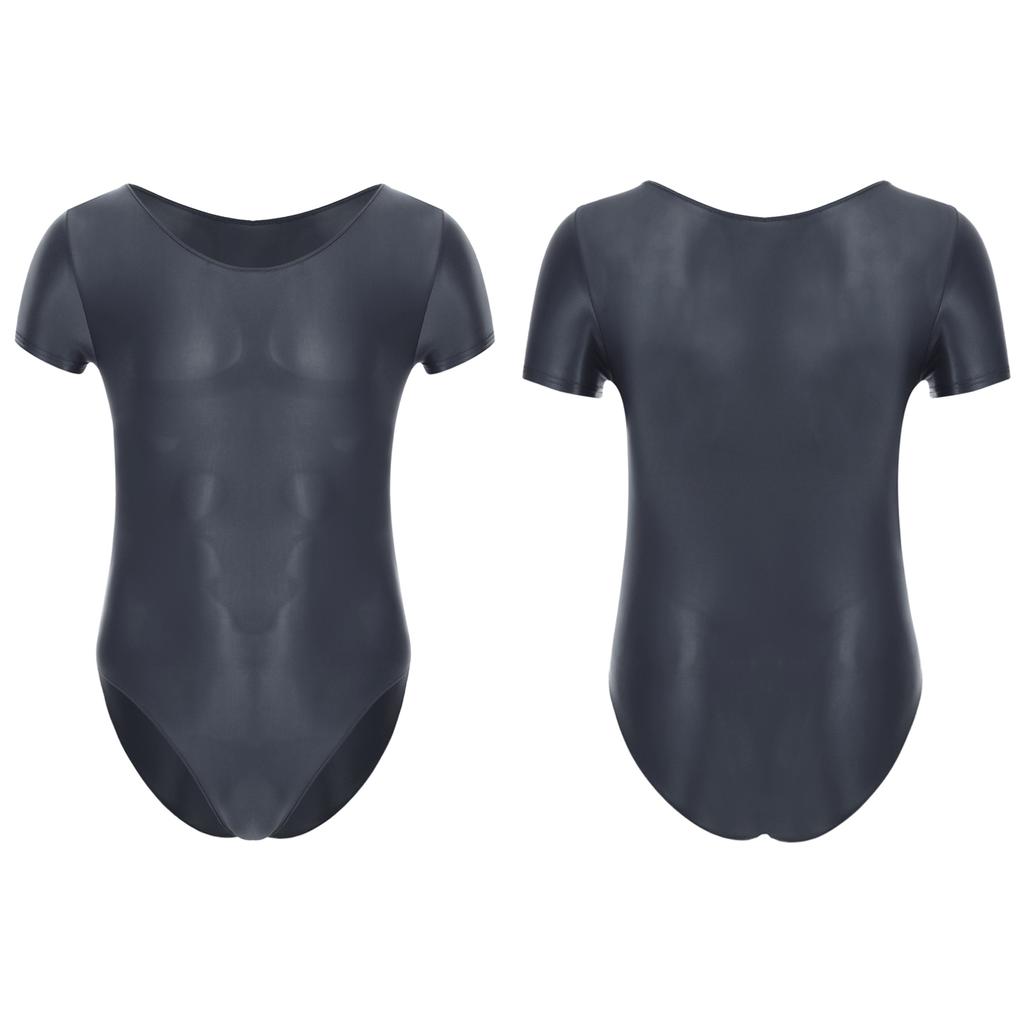 Мужской сплошной цвет с коротким рукавом купальник глянцевый круглый вырез боди с высоким вырезом купальники спортивная одежда