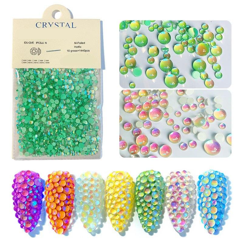 1440 шт., бусины с плоской поверхностью, стразы Авроры для ногтей, разные размеры, симфония Русалки, радужные драгоценные камни, жемчужные камни, украшения для дизайна ногтей