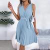 Женское весенне-летнее темпераментное шикарное однотонное платье без рукавов с v-образным вырезом и высокой талией на шнуровке