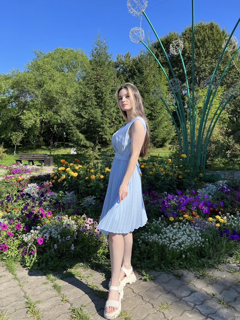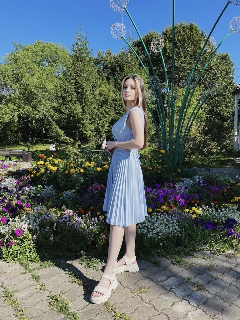 Платьице 💙 Цвет очень красивый, небесно-голубой. На мне размер М. Мои параметры 90/70/95. Рост 162 см. Платье село хорошо, в груди есть достаточно свободного места. Можно было заказывать на размер меньше. Точные замеры изделия 🤗 Обхват груди 94 см. Замер не точный за счёт того, что грудь пошита на запах. Поэтому учитывайте, что там дополнительного места много. Обхват талии 65 см ( по резиночке). Растягивается до 90 см При моем росте резиночка на пару сантиметров выше талии, талию я подчёркиваю с помощью пояска. Он в комплекте. Длина по спинке 95 см. Ткань приятная тактильно, но ощущается что это синтетика. Состав согласно бирки 95 % полиэстер и 5% эластан. Ткань тянется немножко. Низ просто оверложен. Платье смотрится очень симпатично, но есть момент. Грудь окантована тканью какраз в том направлении, в котором она тянется и поэтому стежки ее присобирают и это честно говоря портит вид выреза на груди. На фото все показала. И ещё шлевки. Их нужно будет убрать, слишком большие. А так модель симпатичная и нежная. Хочу поблагодарить вас за лайки и комментарии, я всех вижу и очень ценю ваше внимание. А еще хочу пригласить вас на мой Telegram-канал 👇🏻 𝑰𝒓𝒊𝒔𝒌𝒂𝒋𝒐𝒐𝒎 Это я Присоединяйтесь 😉