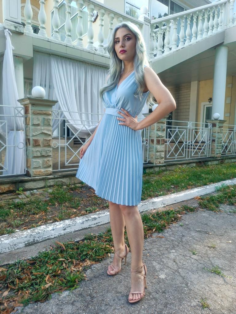 @anaisjoom - мой Телеграм-канал. Подписывайтесь, друзья❤️ Очень милое и нежное платье в нежно-голубом оттенке. С ним можно создать довольно интересные повседневные или образы на выход. 🔸Платье представлено в нескольких расцветках, в размерах S-XL. На мне то, что поменьше. Его замеры: Длина - 89 см ОГ - 96 см ОТ - 62-92 см ОБ - 130 см 🔸Мои параметры: ОГ - 86 см ОТ - 67 см ОБ - 93 см Длина рукава - 52 см Ширина плеч - 37 см Рост 164 см 🔸Платье без рукавов. Верх на запАх. На талии есть шлевки для пояса, который идёт в комплекте. Юбка плиссированная. 🔸Основная ткань полиэстер. Приятная к телу. Не просвечивается. Не электризуется. 🔸Пошив аккуратный. 🔸По цене все ок. Рекомендую 👍 Ставлю ⭐⭐⭐⭐⭐ Большое спасибо продавцу ❤️ и Joom ❤️