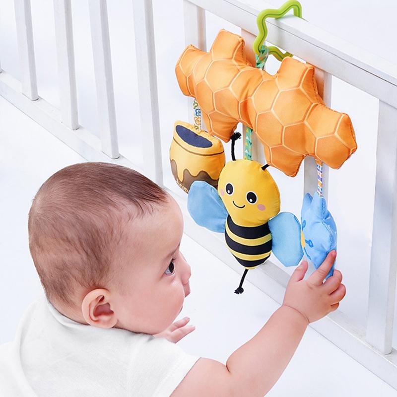 Мягкая коляска для малышей, подвесная кукла, погремушки, детская автомобильная коляска, плюшевый шейкер, животное, пчела, детская плюшевая погремушка