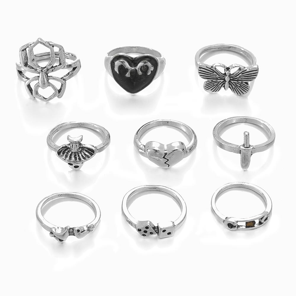 Набор колец с подвеской в виде паука-бабочки из 9 предметов ручной работы с ювелирными изделиями, мечом и холодным шармом