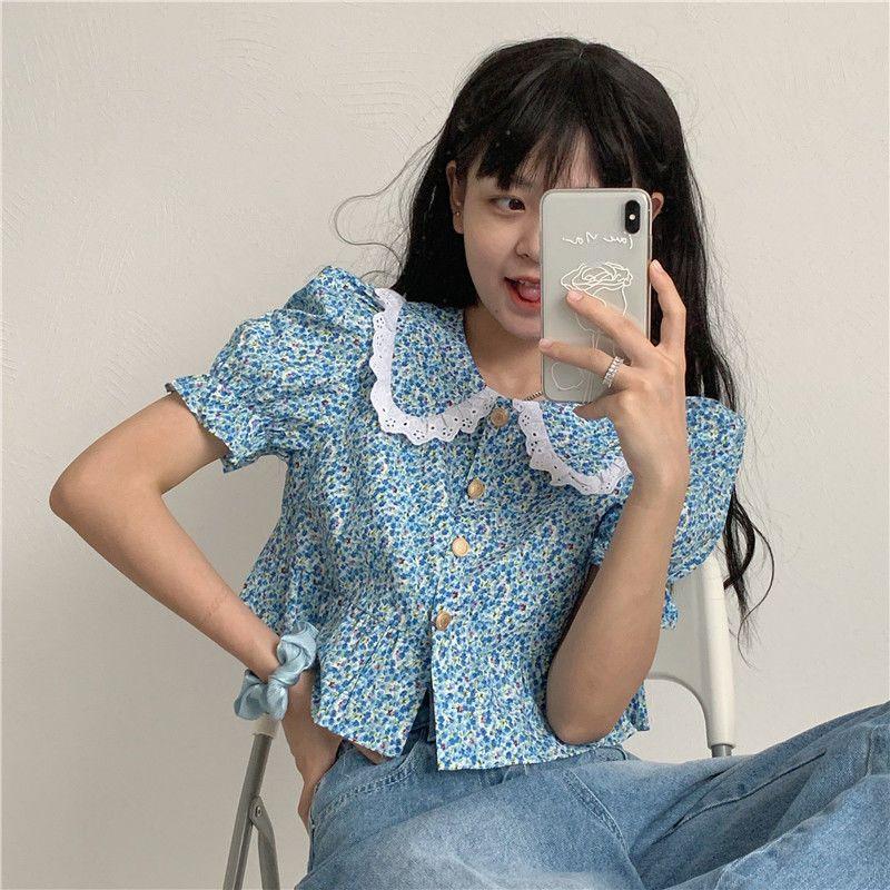 Летний шикарный винтажный топ с воротником «Питер Пэн», женская рубашка в консервативном стиле, кружевные лоскутные повседневные универсальные популярные милые топы — купить товар онлайн с бесплатной доставкой по всему миру!