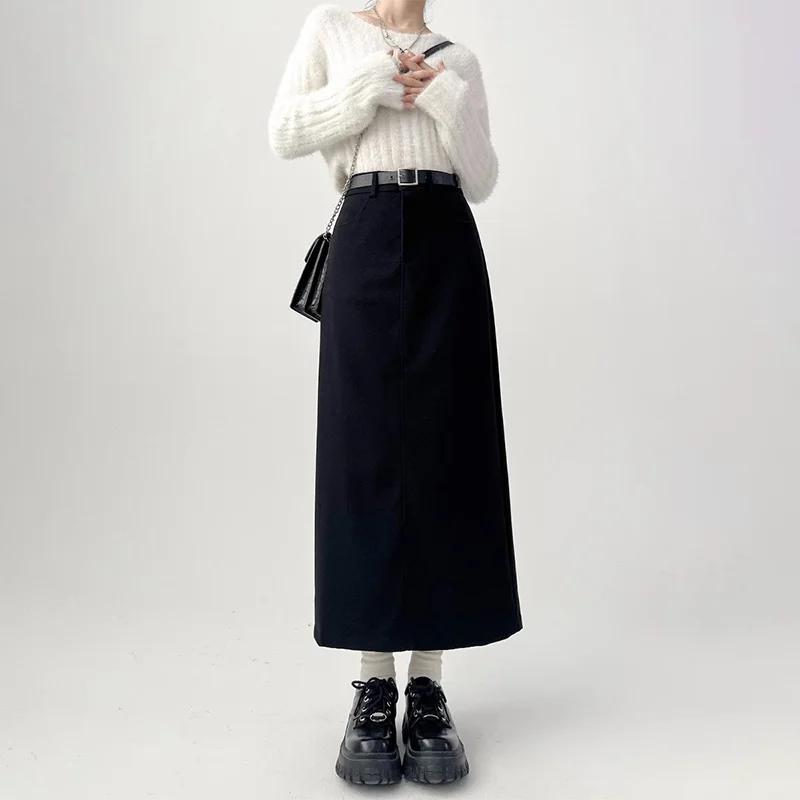 Женский разделенный костюм, юбки-миди, летняя тонкая трапециевидная юбка с высокой талией, женская элегантная повседневная офисная леди, корейский винтажный черный