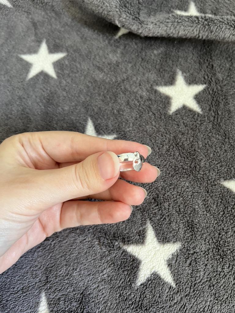 Симпатичное колечко. Немного свободно сидит на пальце, поэтому ношу в паре с другим кольцом, которое плотно прилегает и не даёт соскользнуть этому колечку.