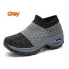 Женские модные кроссовки без шнуровки на танкетке с толстой подошвой, вязаная обувь с дышащей сеткой, удобная легкая нескользящая прогулочная обувь, размер 34-43