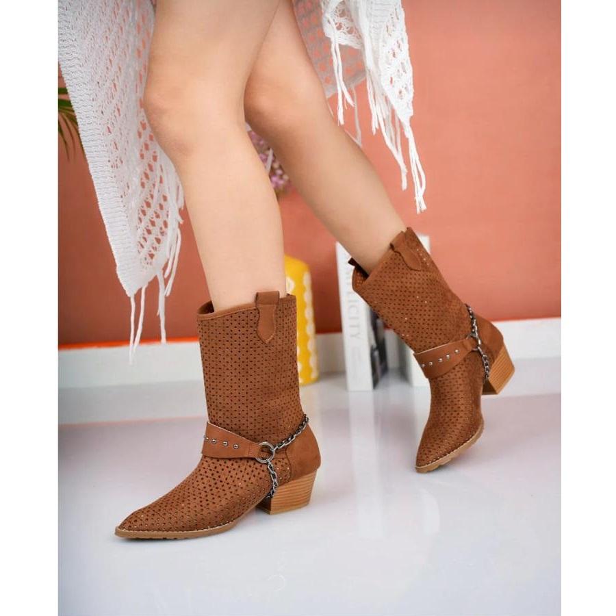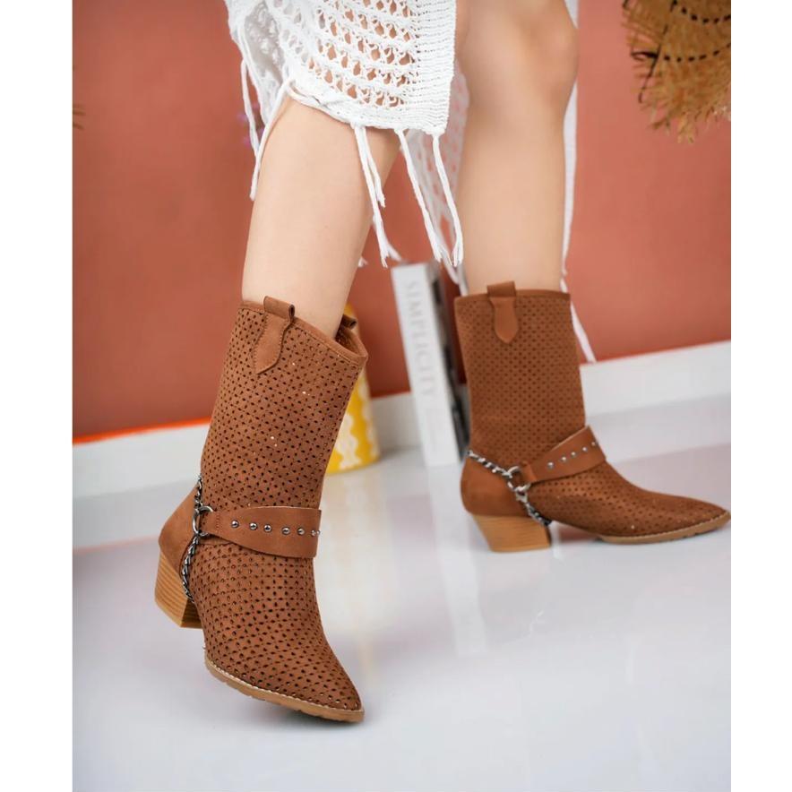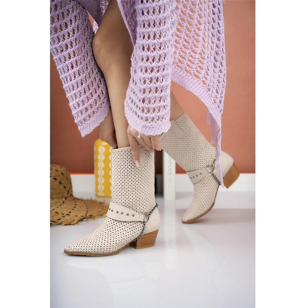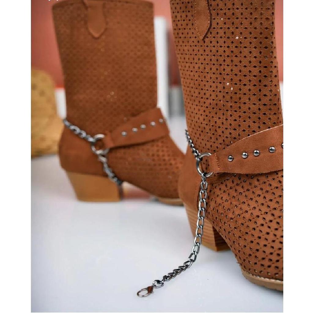 Замшевый аксессуар с перфорированной цепочкой и лазерной резкой. Детальные туфли на низком каблуке. Летние летние сапоги.