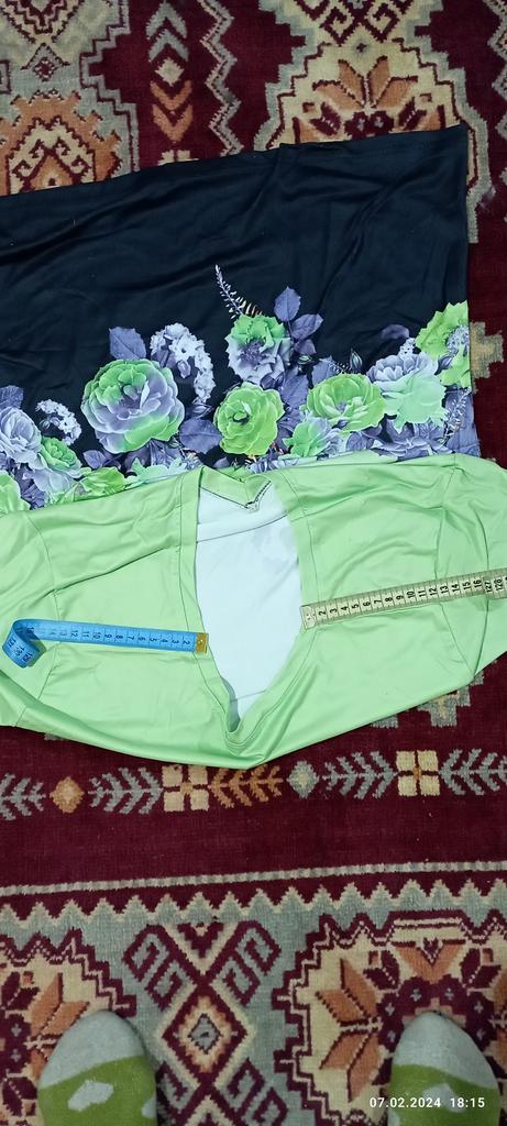 Люблю свободную одежду, поэтому брала на размер больше и угадала. Приятная к телу, надеюсь, носиться будет нормально. Длинноваты рукава (на удивление, мне рукава вечно впритык, а то и коротковаты) но ткань позволяет укоротить их паутинкой. Единственное пожелание - делать рисунок сочнее, все, что на фото черное, в реальности, как несколько выцветшее.