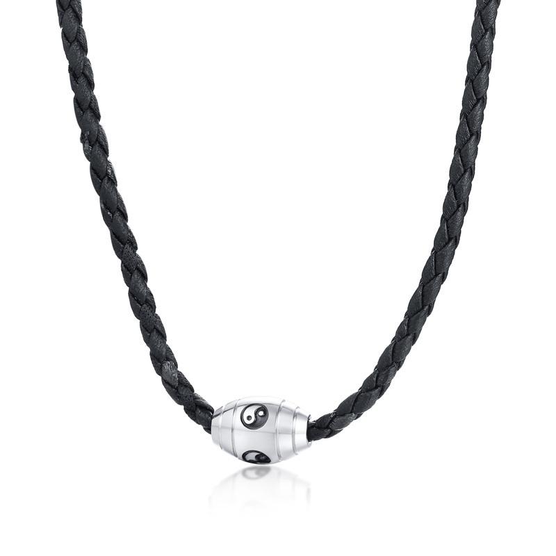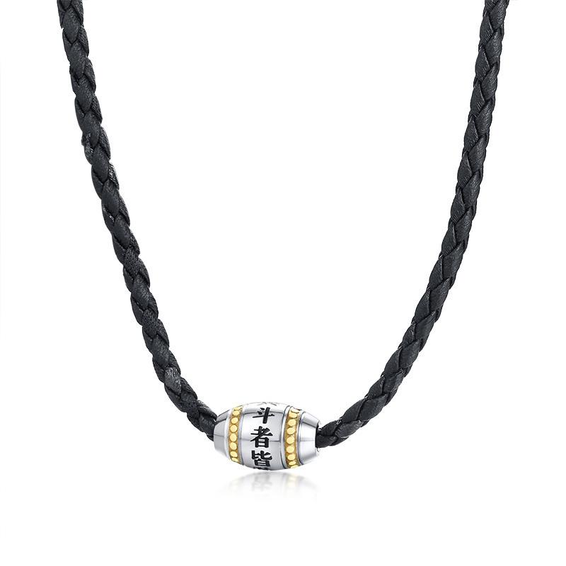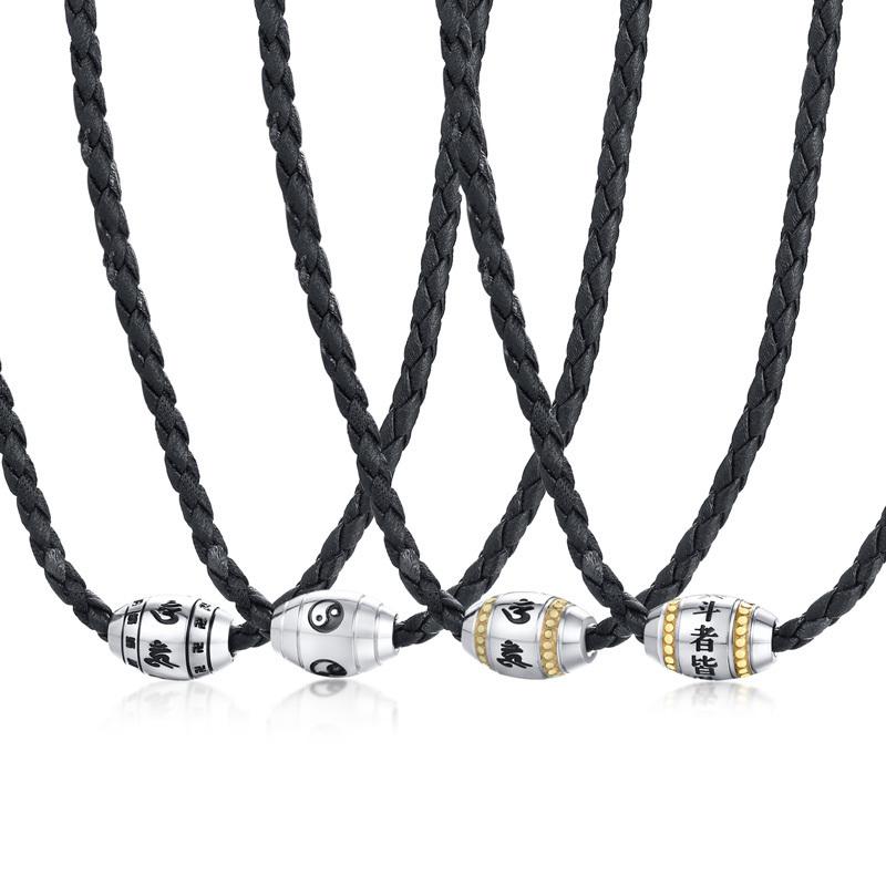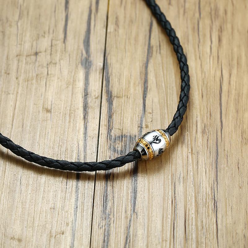 Мужское ожерелье из черной плетеной кожи с колье из нержавеющей стали и бисером для мужчин, ювелирные изделия в стиле хиппи