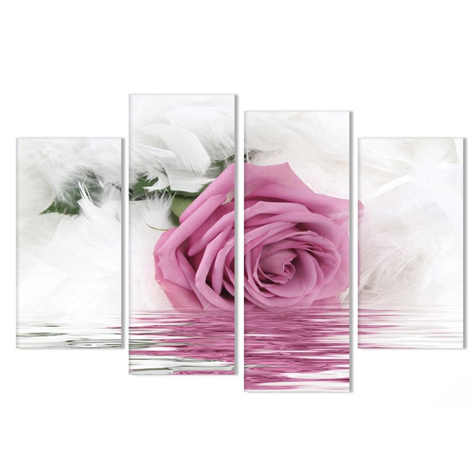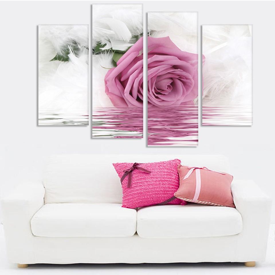 Напечатанная стена, холст, художественная рамка, декор для кухни, ресторана, 4 шт., перо, розовая роза, цветок воды, гостиная, HD постеры, фотографии
