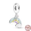 Подвеска-клипса, подвеска из стерлингового серебра 925 пробы, подходит для браслета, женский ювелирный подарок, красочный единорог, радуга