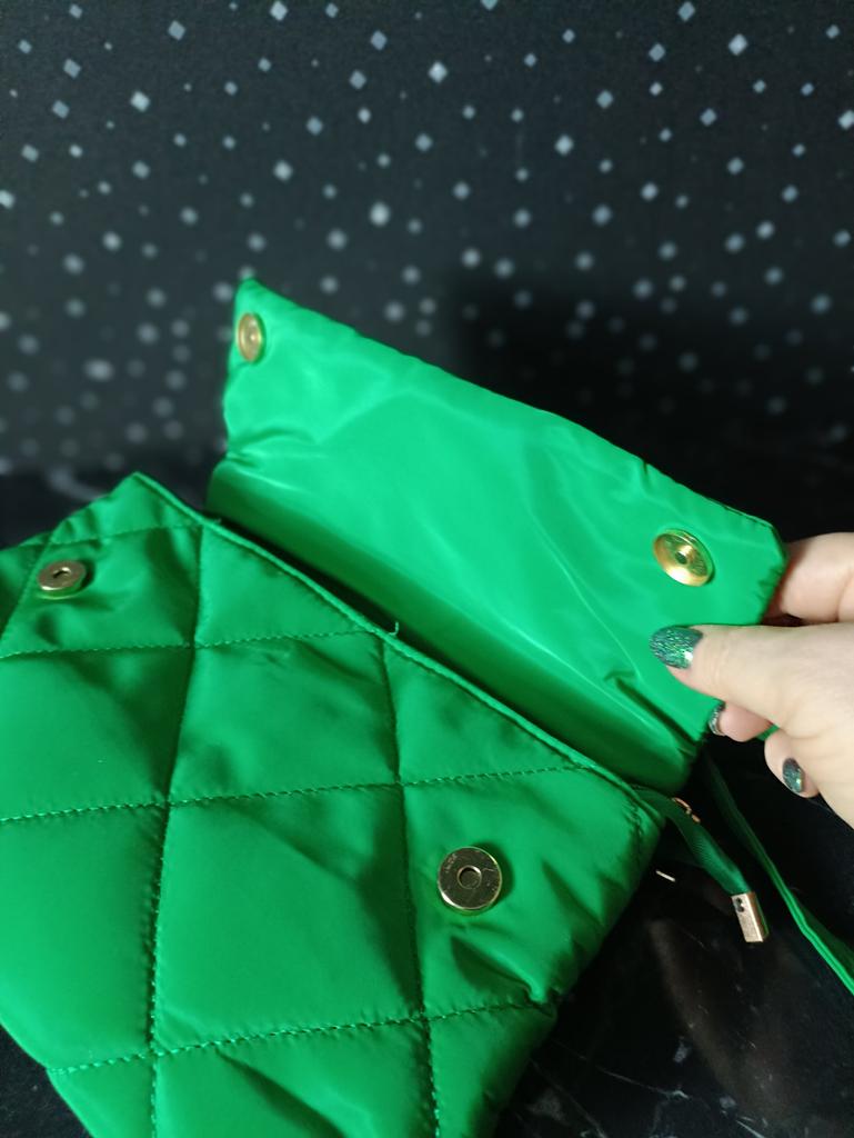 Сумочку зелёного цвета получила в целости.Маленькая, думала будет больше, привыкла к своим большим сумкам шопперам.Может летом буду носить, у меня маленьких сумок много разных цветов, а хожу с большими всё равно.А так сумочка аккуратно сделана, красиво смотрится, цепочка акриловая имеется,мне удобно сумки на руке носить, как раз для этой цели цепочка пригодится.В целом я довольна. Спасибо магазину и Джум.👍🥰