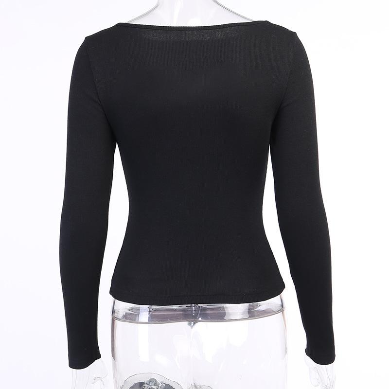 Весенние или осенние женские трикотажные футболки с длинными рукавами, однотонные и полые повседневные тонкие футболки с круглым вырезом