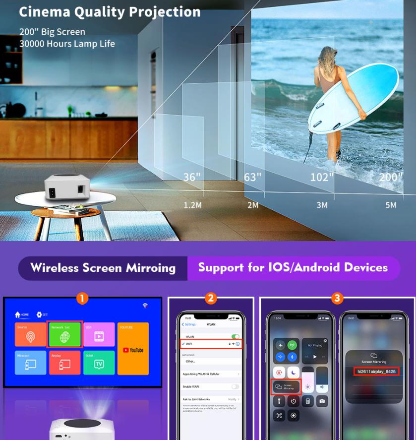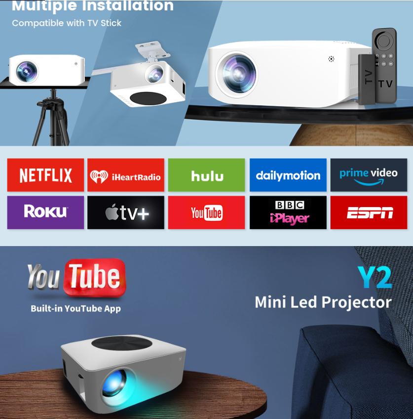 2023 Y2 Android WIFI HD 1080P проектор Портативный мини-мини домашний светодиодный проектор