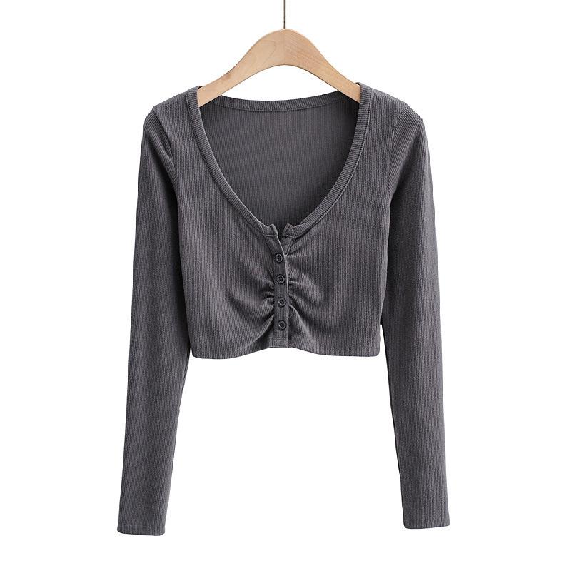 Тонкие женские топы и блузки с v-образным вырезом и длинными рукавами, сплошной цвет, кардиган с открытым пупком
