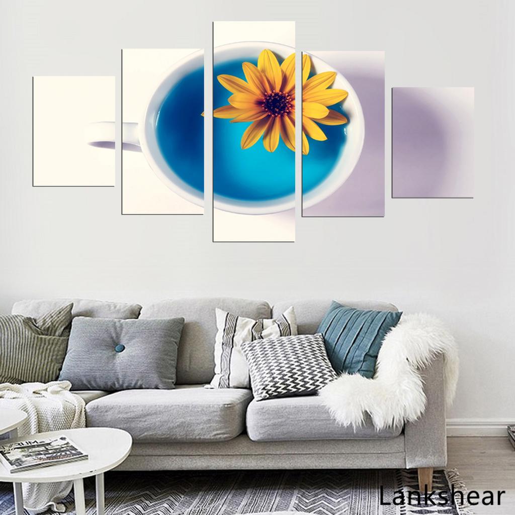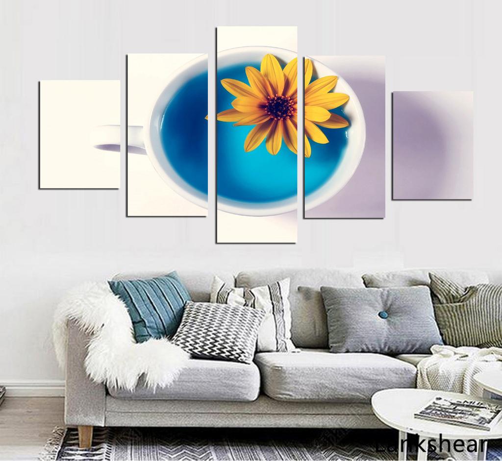 Настенные картины на холсте, домашний декор, 5 шт., картины с чашками и цветами, модульные HD-принты, плакат в рамке, белый фон для дома