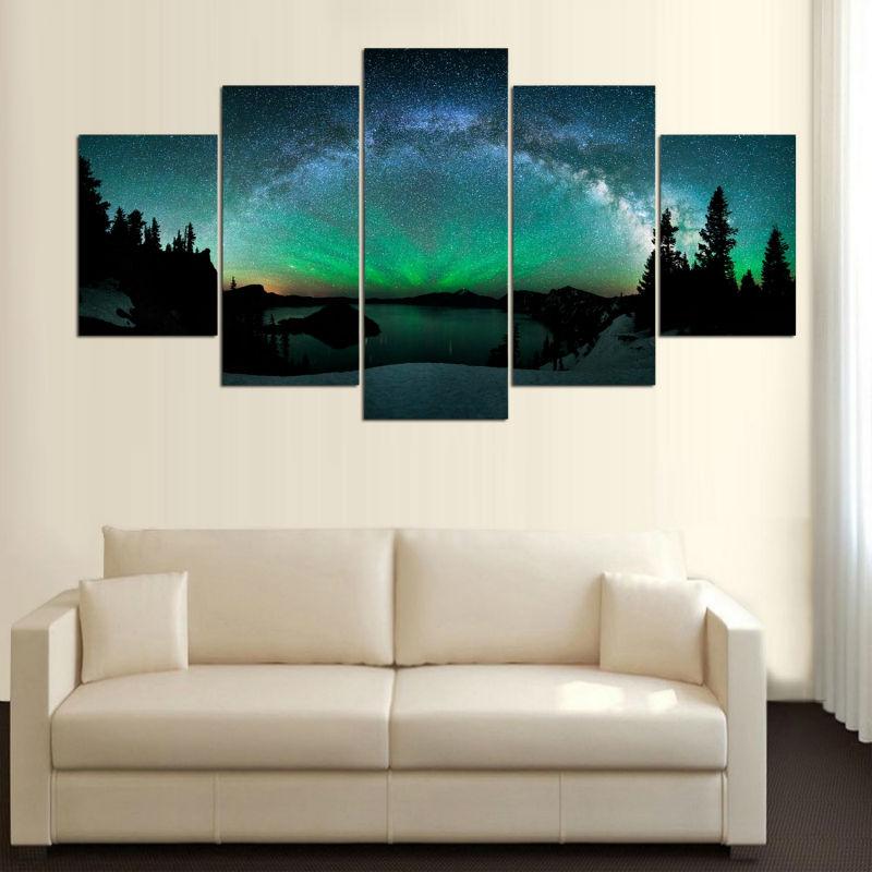 HD печатные картины, рамки, холст, настенное искусство, домашний декор, 5 шт., Tarburst Over Aurora Boreal, абстрактный пейзаж для гостиной