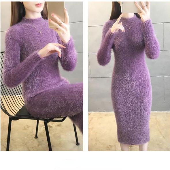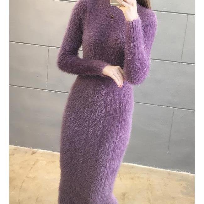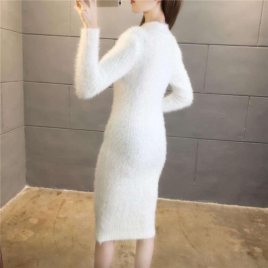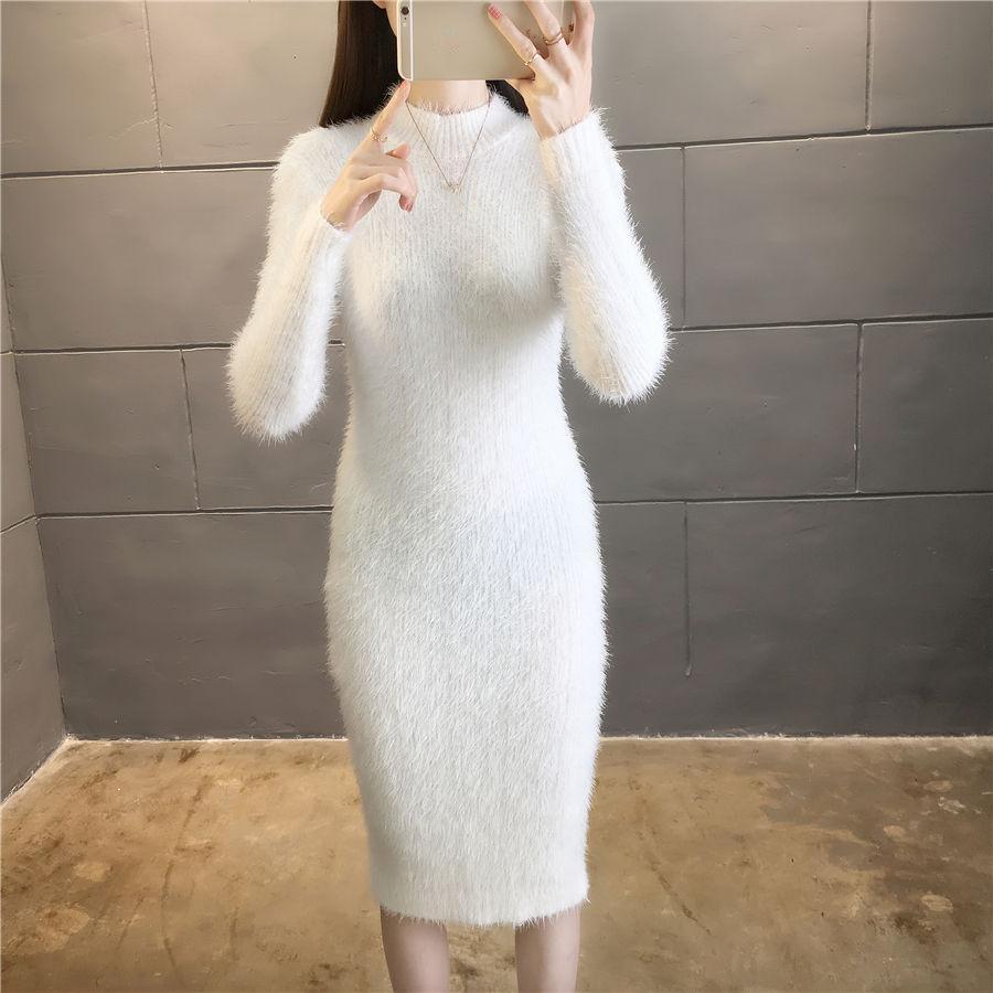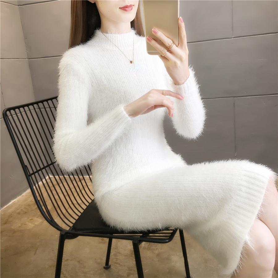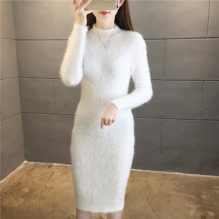 Осень-зима, женский повседневный бархат из искусственной норки, сохраняющий тепло, водолазка, облегающий свитер большого размера, вязаное платье, S-3XL