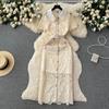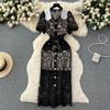 Высокое качество, женское длинное платье миди с вышивкой, летнее платье с лацканами и короткими рукавами, винтажное женское офисное кружевное платье-карандаш