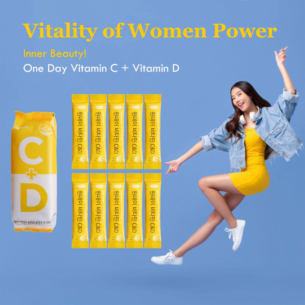 HURUM OneDay Vitamin C+D Здоровье клеток Здоровье костей Необходимый витамин C, витамин D [Упаковка BOX 2g x 100ea] [Mini Pack 2g X 10ea] Корейский витамин