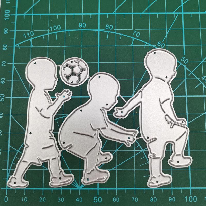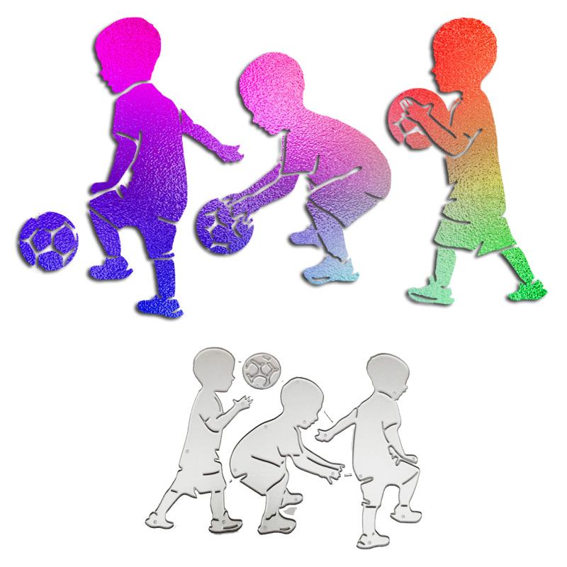 3 футбола дети играют в футбол дизайн стиль металлические трафареты DIY Скрапбукинг трафарет для тиснения бумага ремесло шаблон альбома