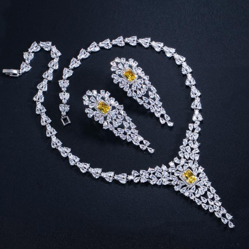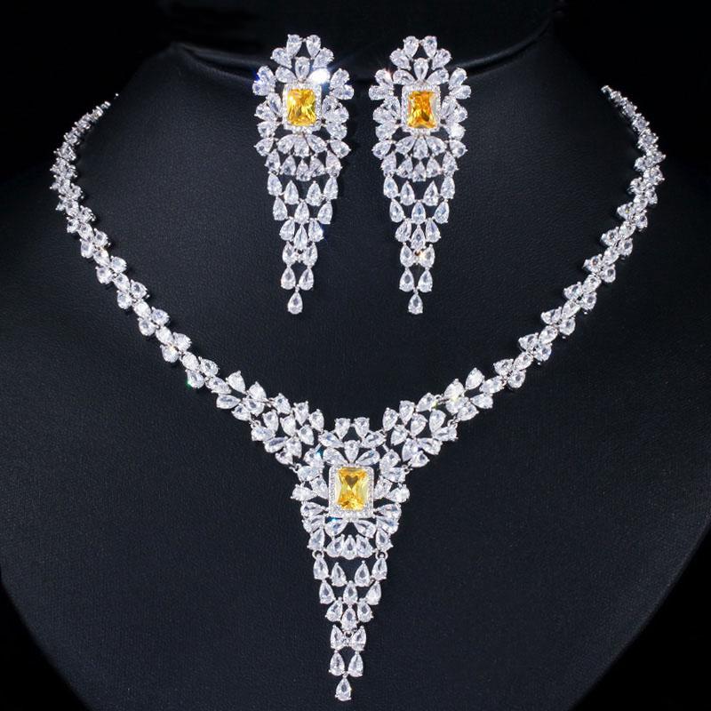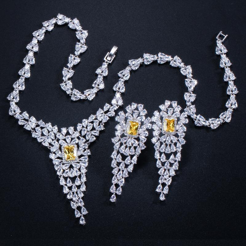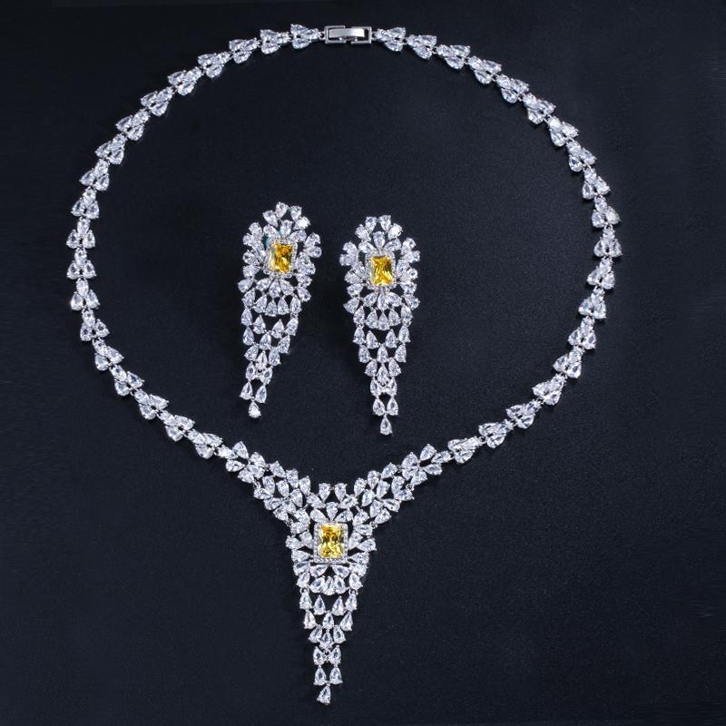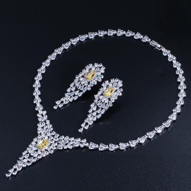 CMM Одежда высшего качества груша с фианитом Роскошный женский свадебный вечерний костюм комплект ювелирных украшений