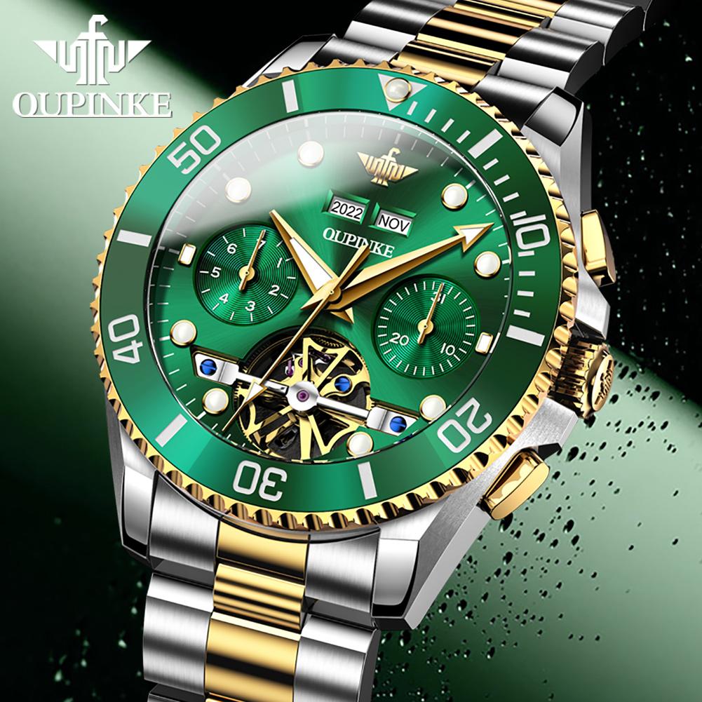 OUPINKE Новые мужские часы для бизнеса и отдыха, многофункциональные механические часы с полым турбийоном, светящиеся высококачественные часы