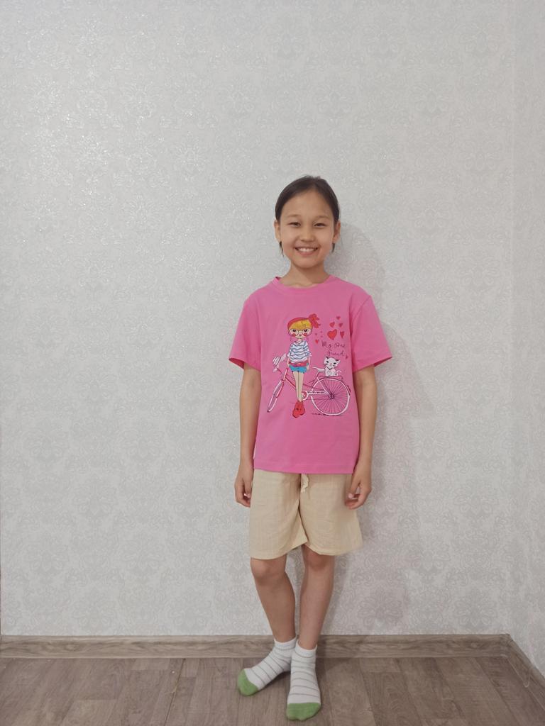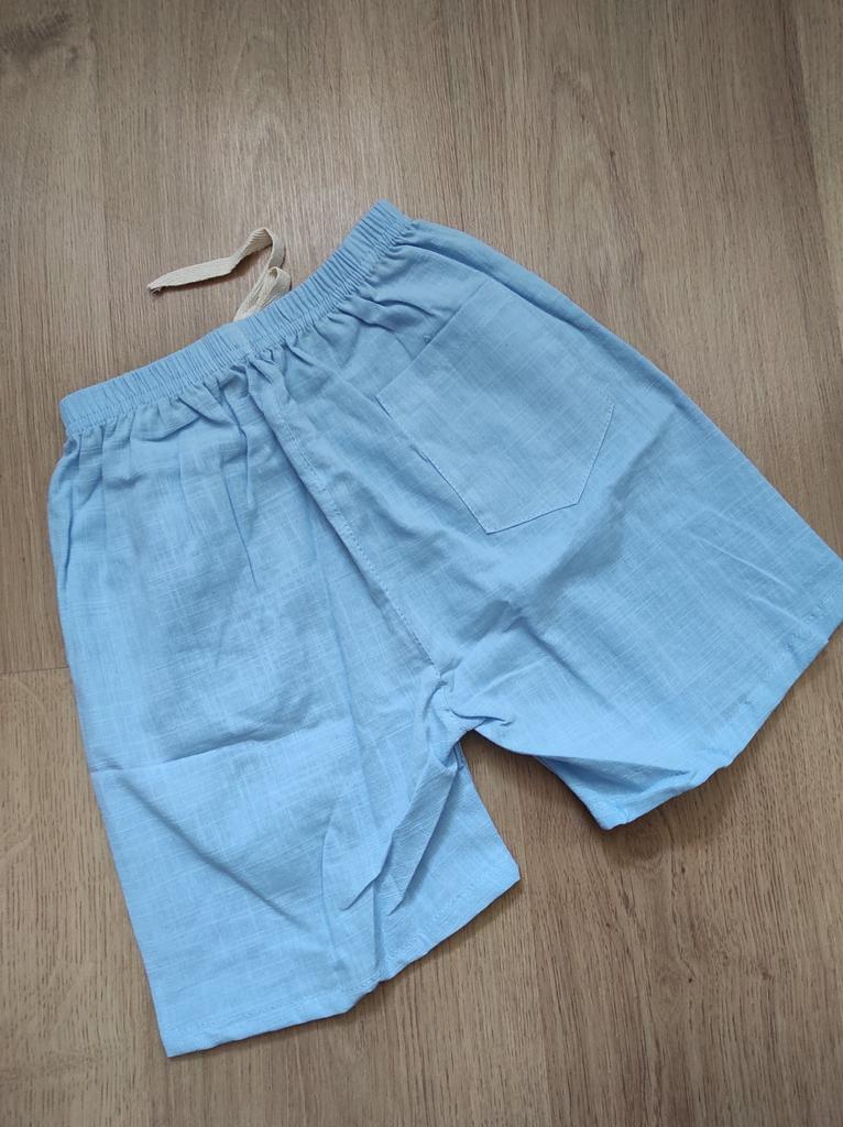 Детские летние шорты. Очень тоненький хлопок, прям светится, на нашу жару то, что надо. Ребёнок носит размер 104, заказала 110, сели отлично, присутствует небольшой запас, но на следующее лето скорее всего будут малы, значит выбор размера сделала правильный. Рост ребёнка ~101, вес 16,3кг. Цвет приятный, шорты на резинке, шнуровка спереди декоративная Рекомендую к покупке.