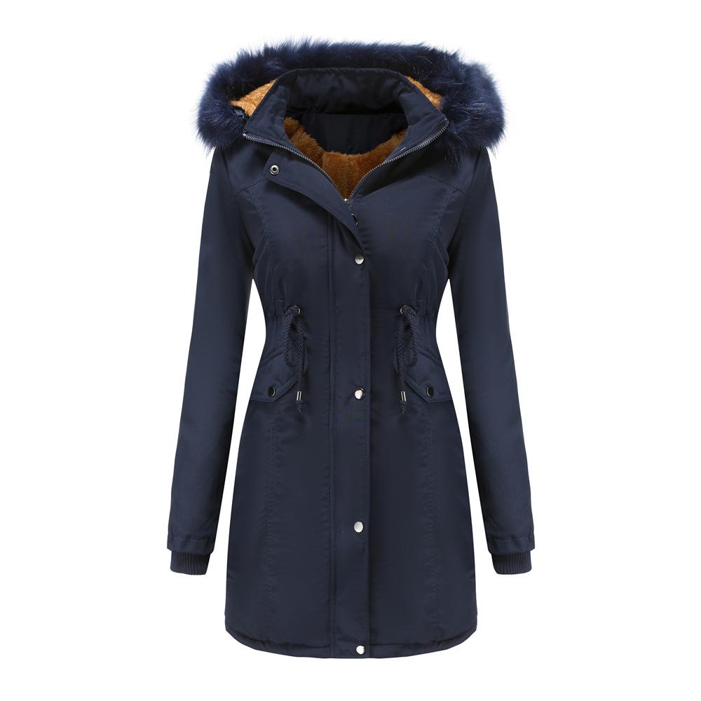 Теплое хлопковое пальто, женское утепленное хлопковое пальто плюс бархатное хлопковое пальто, женское пальто со съемной шапкой, большой меховой воротник