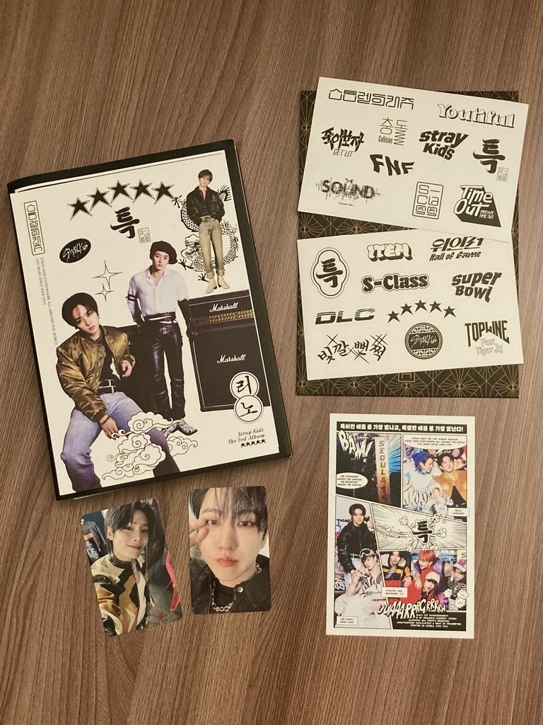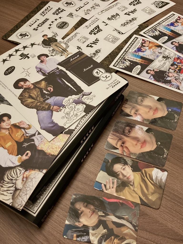 альбомы пришли без дефектов, упакованы были в пупырку и картон. что насчет начинки.. она немного меня расстроила🥲 у меня есть все версии альбомов, но ни в одной из них мне не попались карты, которые я так хотела :/ и я боялась, что мне попадется повторка.. и вот это случилось, два бинни выпали мне именно в этом сете🫠 скорее всего буду продавать или обменивать.. в версии С мне попался чанбин, просто ВСЕ с ним.. (кроме плаката конечно, прошу прощения, плакаты я забыла сфотографировать) мини постер и обе карты с бинни, а в версии А мне попался мини постер с лино (хоть что то с ним попалось🥹) карты с йенни и снова с бинни :/ а так в целом все в порядке🥲 благодарю! stray kids everywhere all around the world <3