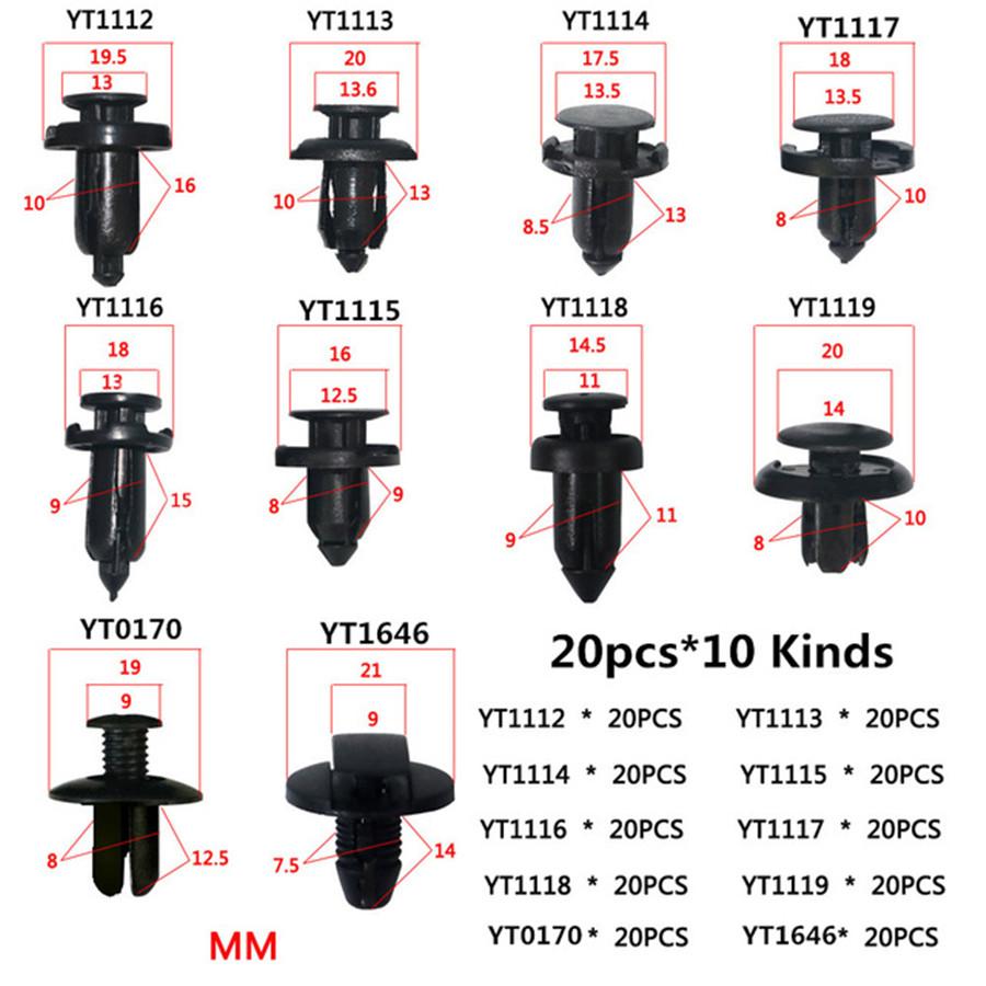 200 шт смешанные автомобильные зажимы для бампера, фиксатор, заклепка, дверная панель, крепеж для облицовки крыла — купить товар онлайн с бесплатной доставкой по всему миру!