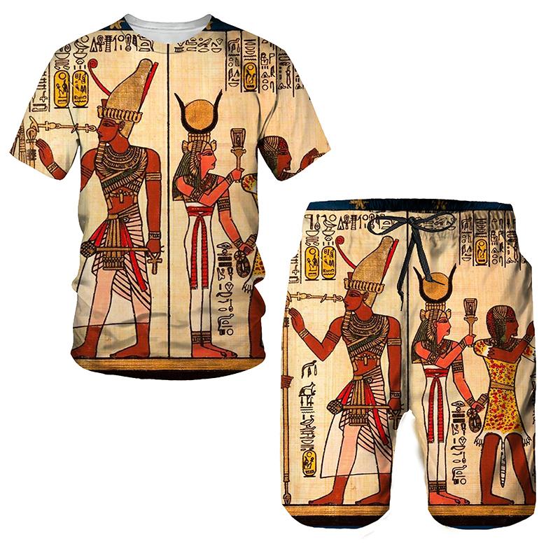 Летний мужской комплект футболок, модные шорты с коротким рукавом, комплект из 2 предметов, спортивный костюм большого размера, повседневный красивый уличный костюм в египетском стиле — купить товар онлайн с бесплатной доставкой по всему миру!