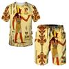 Летний мужской комплект футболок, модные шорты с коротким рукавом, комплект из 2 предметов, спортивный костюм большого размера, повседневный красивый уличный костюм в египетском стиле