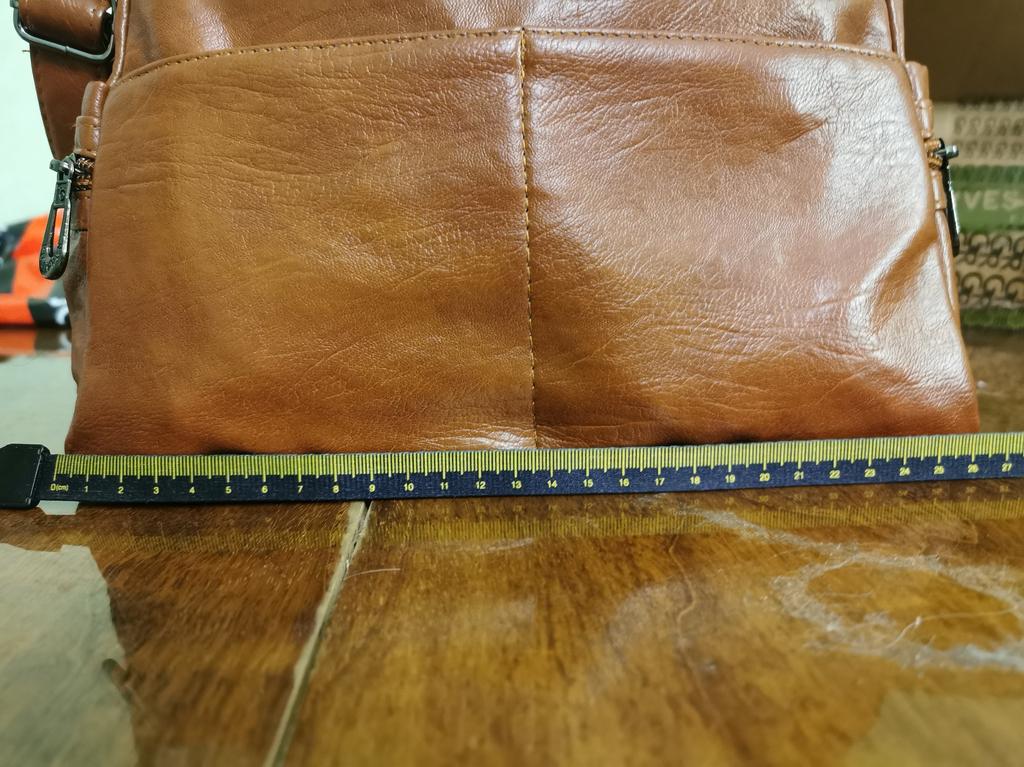 Сама по себе сумка хорошая. Все, как на картинке. Материал мягкий и не толстый. Только на картинке у неё верх не заужен, а по факту к верху она немного заужена, отчего немного неудобно. И ещё, когда выбирала сумку, смотрела размер, чтобы подошёл под мои документы. А когда пришла, то оказалась меньше того размера, что указан. У продавца написано, что при ручной мерке разница может быть от 1 до 3 см. Фото с размером прикладываю. По факту, разница гораздо больше. Поэтому, кому не так важен размер, можете брать. А так, спасибо продавцу за оперативность, за хорошо сшитую сумку.