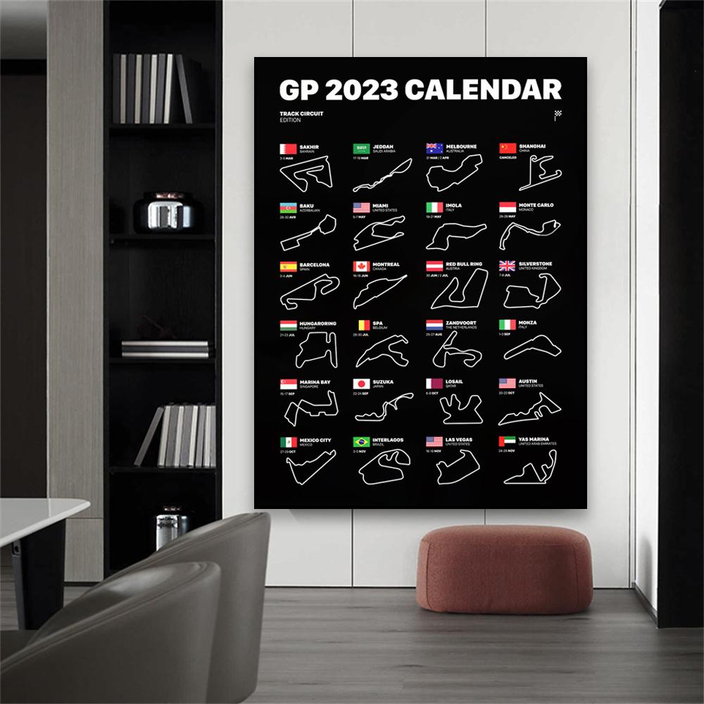 F1 2023 Календарь Плакат Схема 2023 Сезон Принты Спортивный Гоночный Автомобиль Трек Печатает Гран При Холст Картина Офис Настенный Художественный Декор