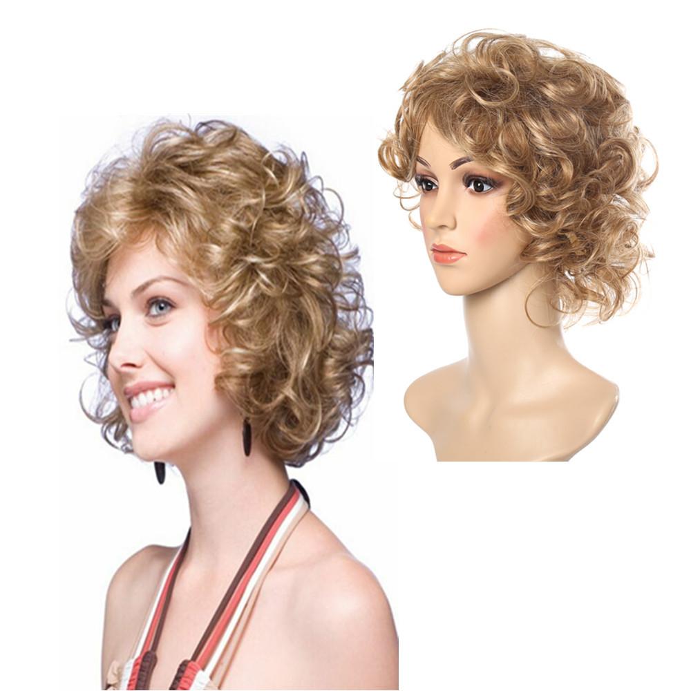 Синтетические короткие вьющиеся парики для женщин Боб Блондинка Коричневый парик Натуральные волосы Вьющиеся парики Женский парик для косплея