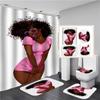 Элегантный черный афроамериканский женский комплект занавесок для душа с принтом, 4 шт., полный комплект, водонепроницаемые шторы для ванной комнаты, противоскользящие коврики для ванной, ковры, коврики