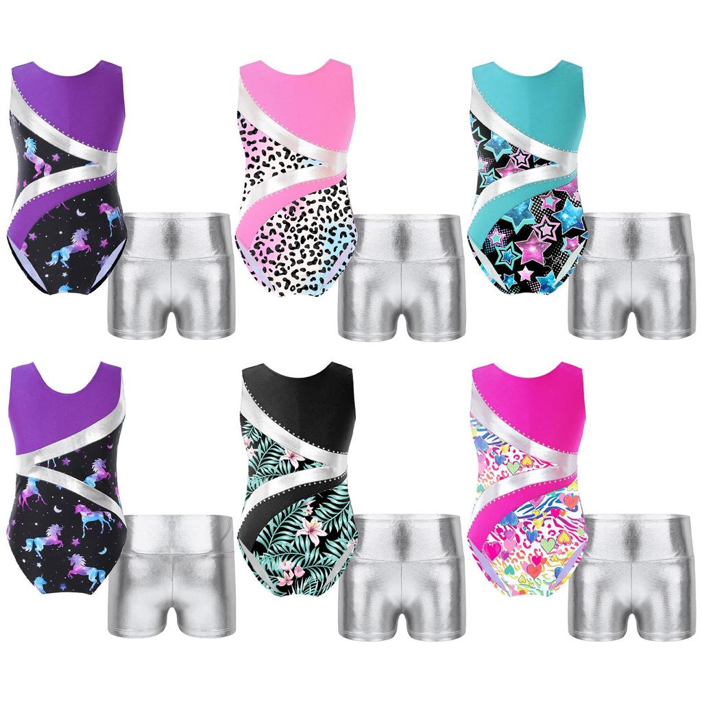Детские гимнастические купальники без рукавов с круглым вырезом для девочек и шорты, наряды для спортивных танцев, велосипедки — купить товар онлайн с бесплатной доставкой до всему миру!