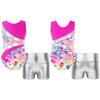 Детские гимнастические купальники без рукавов с круглым вырезом для девочек и шорты, наряды для спортивных танцев, велосипедки