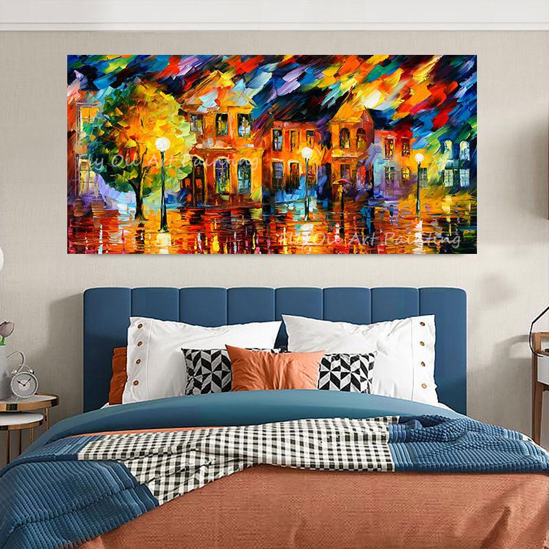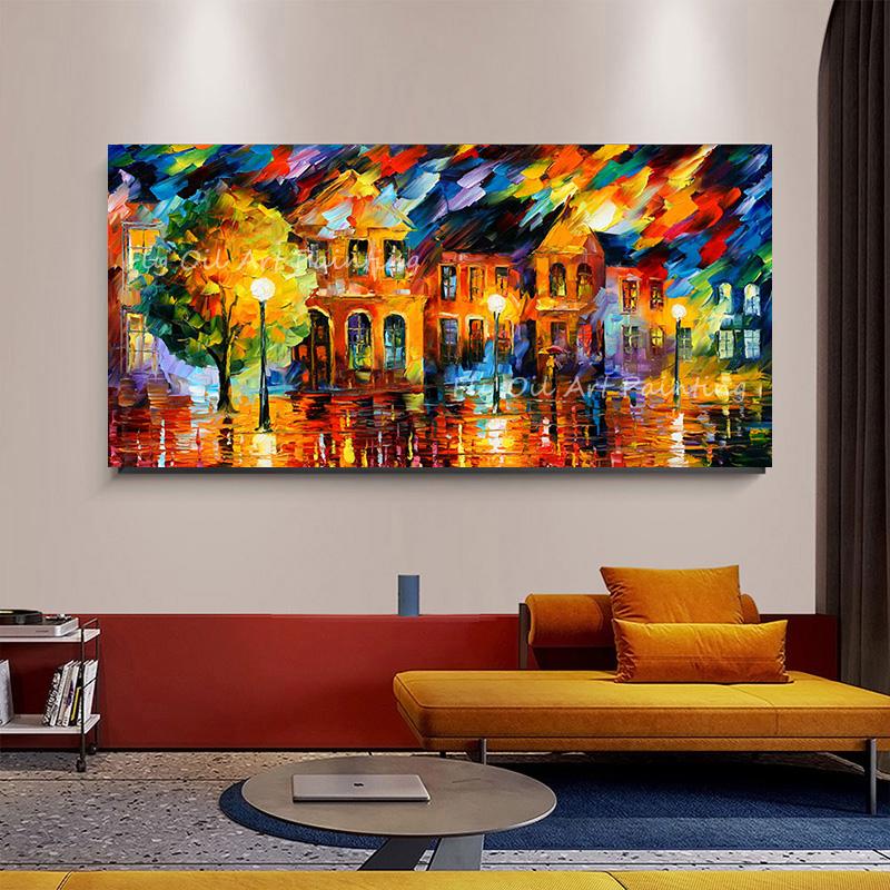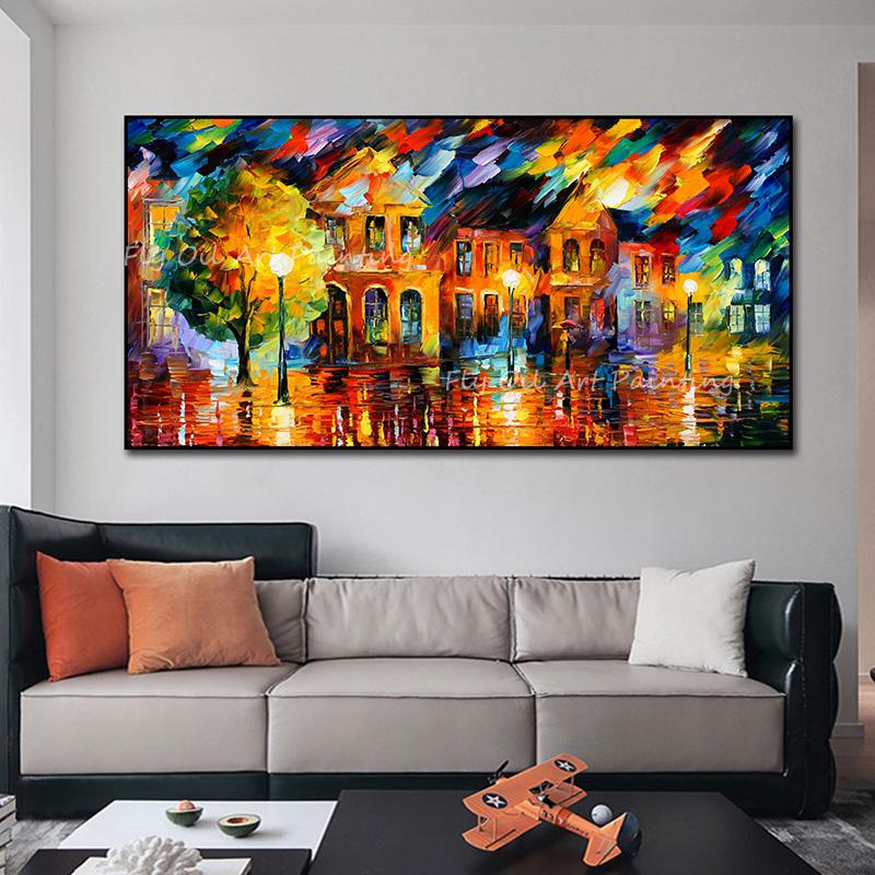 100% ручная роспись большого размера, современный абстрактный нож, уличная красочная художественная картина маслом для офиса, украшения гостиной, подарок