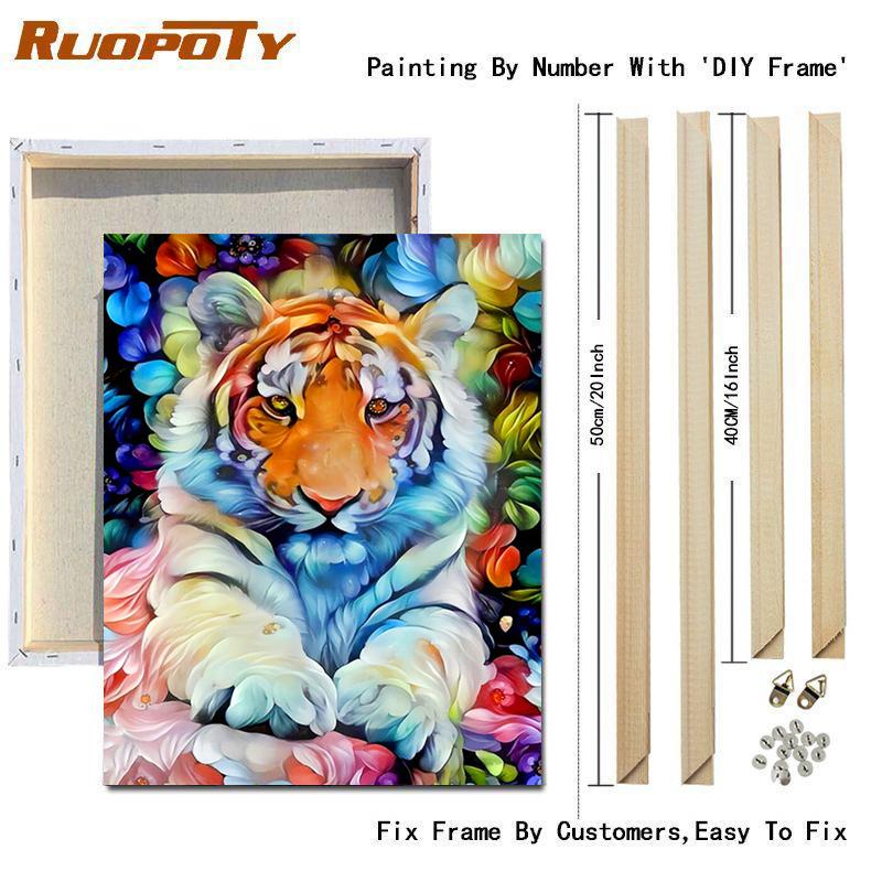 RUOPOTY Рамка для рисования по номерам для взрослых, наборы для начинающих, тигр, животные, идея «сделай сам», подарок, акриловая краска на холсте, картина для декора комнаты