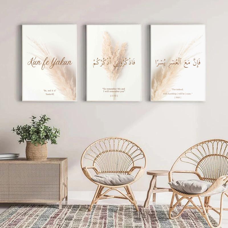 Исламская каллиграфия, настенный художественный постер, бежевый стеклянный принт, Аятул Курси, Коран, холст, живопись, настенные панно для декора гостиной